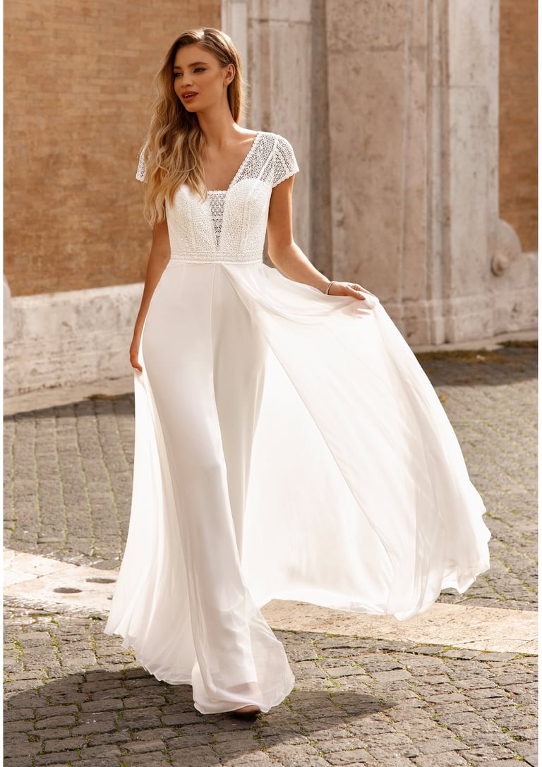 En 2026, la tendance pour le mariage civil s’oriente clairement vers un minimalisme travaillé, ponctué de touches mode très affirmées. Les coupes sont impeccables, presque architecturales, mais les volumes restent doux: tailleurs croisés à taille marquée, combinaisons fluides avec jambes larges, robes chemisier ceinturées. Les matières responsables et recyclées gagnent du terrain, tout comme les tissus texturés: jacquard discret, crêpe grainé, broderies ton sur ton. On voit apparaître des détails amovibles, parfaits pour passer de la mairie au dîner: surjupe qui s’enlève, cape légère, manches détachables, col lavallière ou gros nœud qui se clipse.